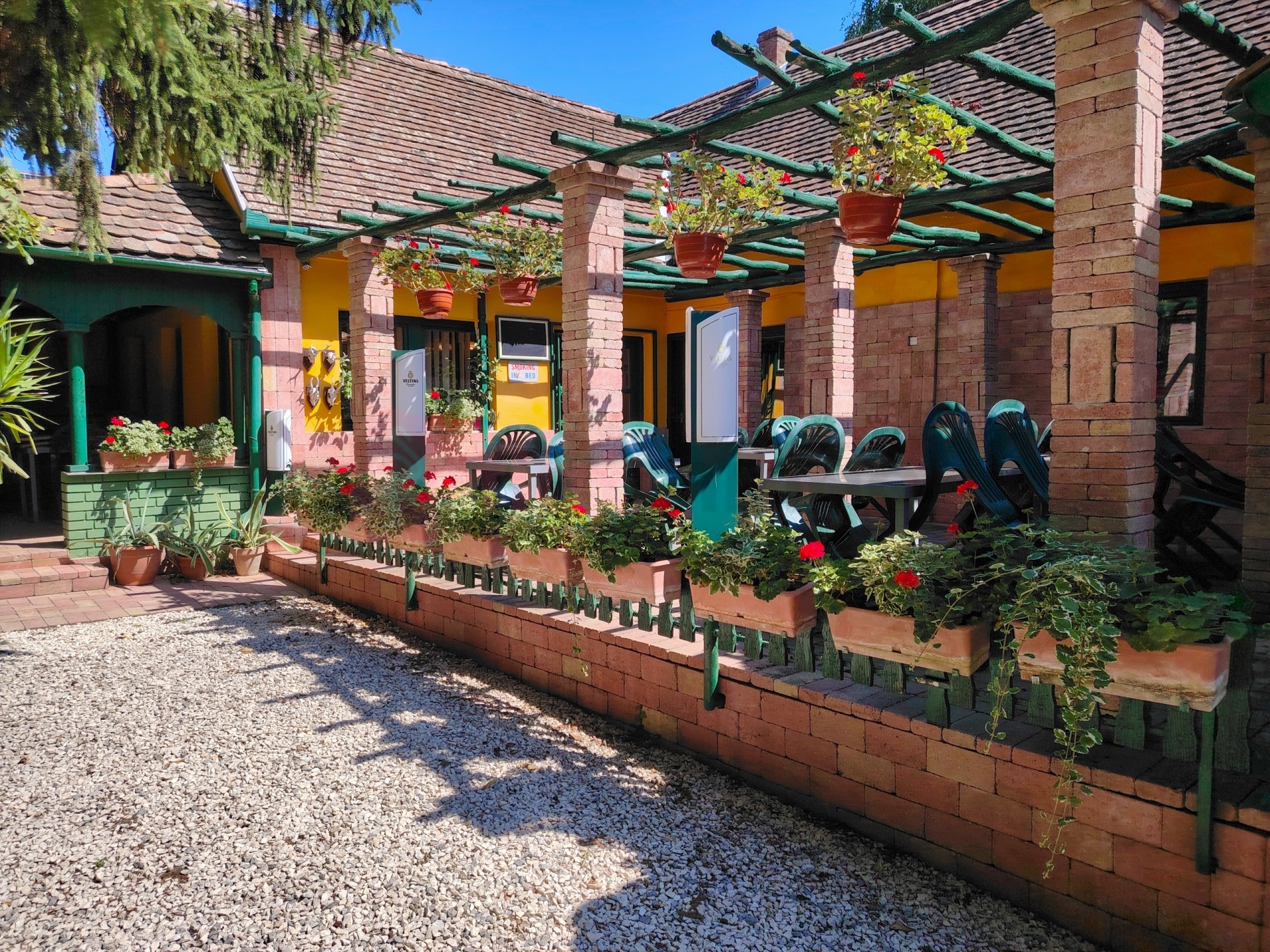 Az épület másik felét korábban átalakították, ami természetesen könnyen visszaalakítható. A belső térben 30 fő befogadású étteremnek ad helyet, ami kiegészül a külső teraszon és kerthelyiségben további 30-40 férőhellyel. A konyha felszerelése minden korszerű és elvárható igényt, HACCP előírást kielégít, rozsdamentes főzőedényekkel, az éttermi felszolgálás minden asztali és tálaló kellékével. Rendelkezik még egy járható méretű készétel hűtő kamrával, valamint a rendezvényekhez elengedhetetlen melegentartó és tálaló pulttal.