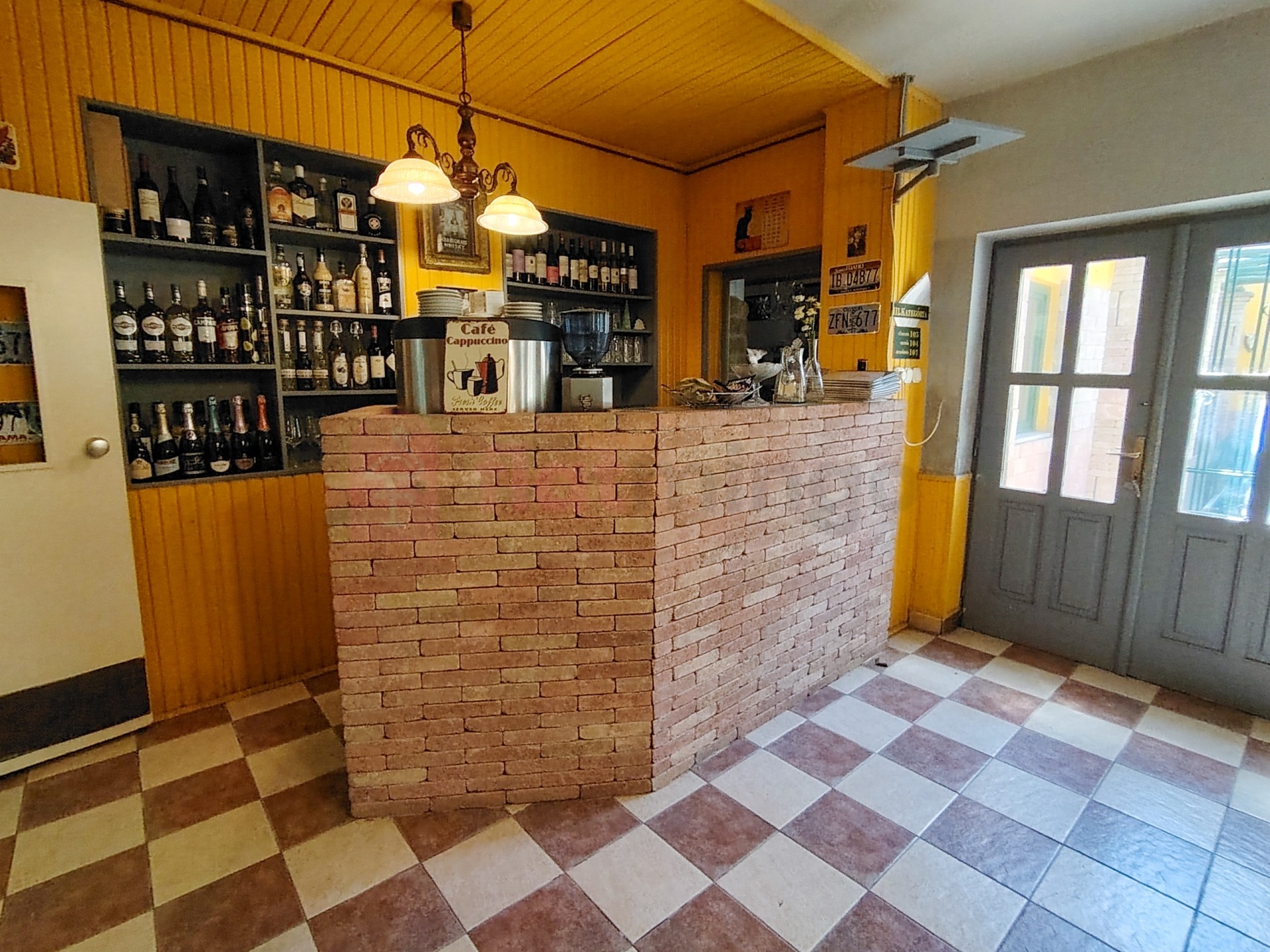 Az épület a képeken látható és a helyszínen megtekinthető teljes bútorzattal, dekorációs anyagokkal, képekkel, szőnyegekkel, valamint konyhai berendezésekkel, konyhai és éttermi felszereléssel, edényzettel együtt eladó.