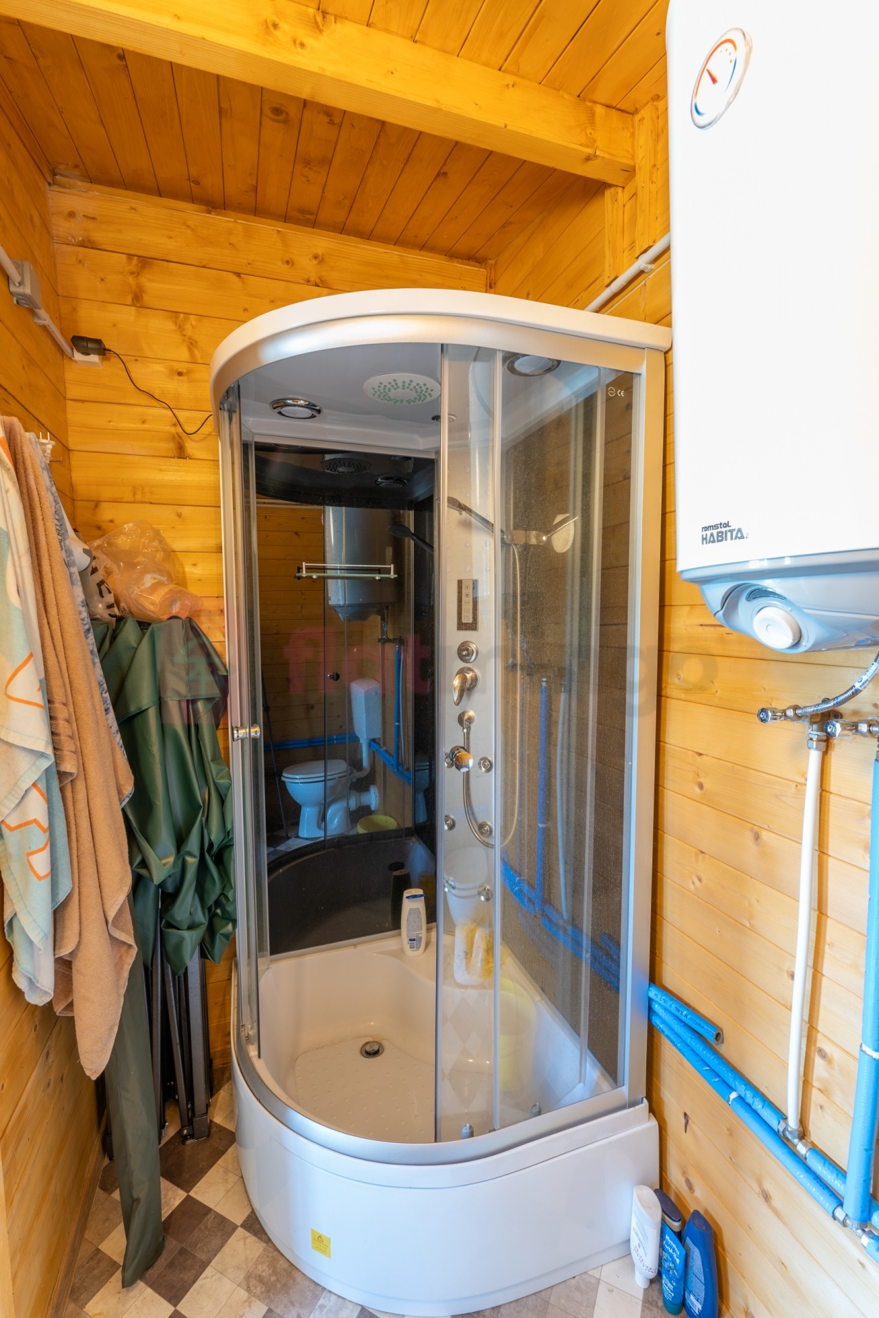 Az állandó lakásra is alkalmas eredeti téglaépület 2005-ben épült. 2022-ben teljeskörű felújítás és bővítés során, hőszigetelést követően kapott kívül-belül faburkolatot és egy nagyméretű üvegezett panorámás télikertet. Az épület jelenleg is meglévő, vegyes tüzelésű kazánnal működő radiátoros központi fűtés rendszere kiegészült egy 7 kW-os, tovább bővíthető napelemrendszerrel és 3 db hűtő-fűtő klímával, ami a teljes épületet képes ellátni.